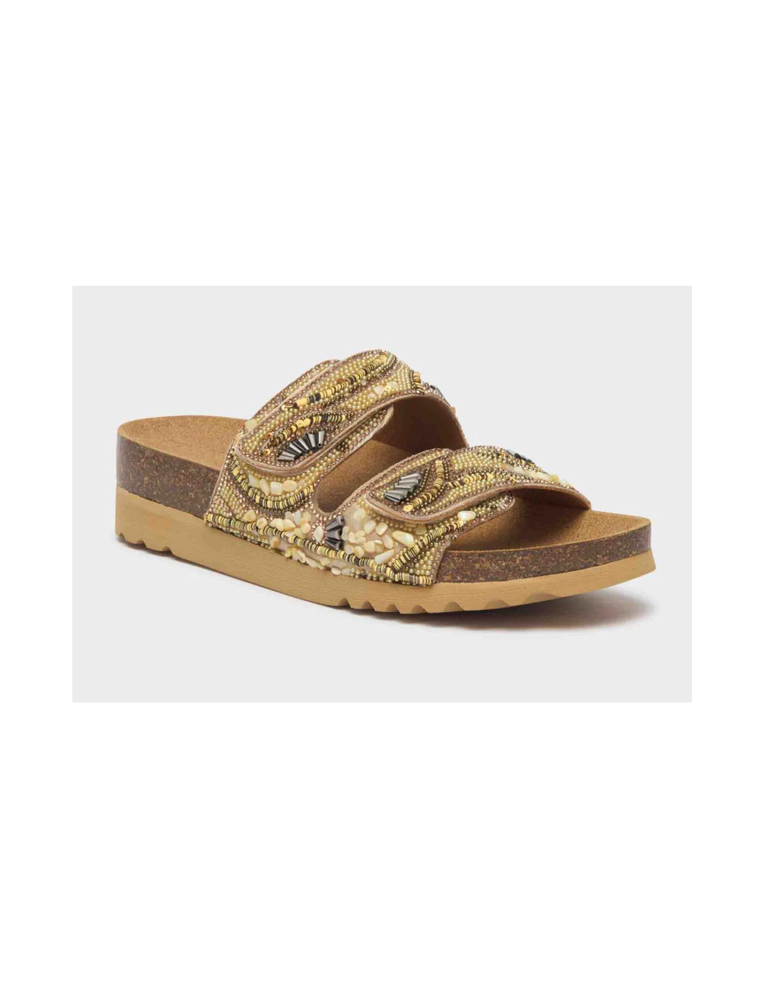 SCHOLL SANDALI LISBOA 2 STRAPPI - BEIGE CON PERLINE. Sandalo donna dal design estroso e accattivante, perfetto per chi cerca un mix di stile e comfort. Dotato di tecnologia Bioprint®, migliora la postura sostenendo l’arco plantare, garantendo una camminata confortevole e naturale. La tomaia, realizzata in microfibra e arricchita con perline, presenta due cinturini regolabili che offrono una calzata personalizzata e sicura. Ideale per completare look estivi con un tocco di originalità e glamour.