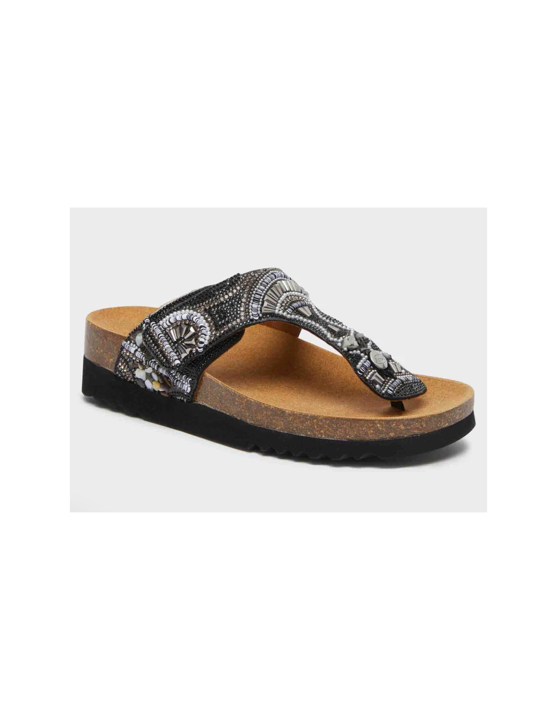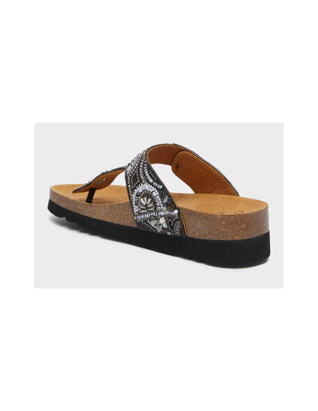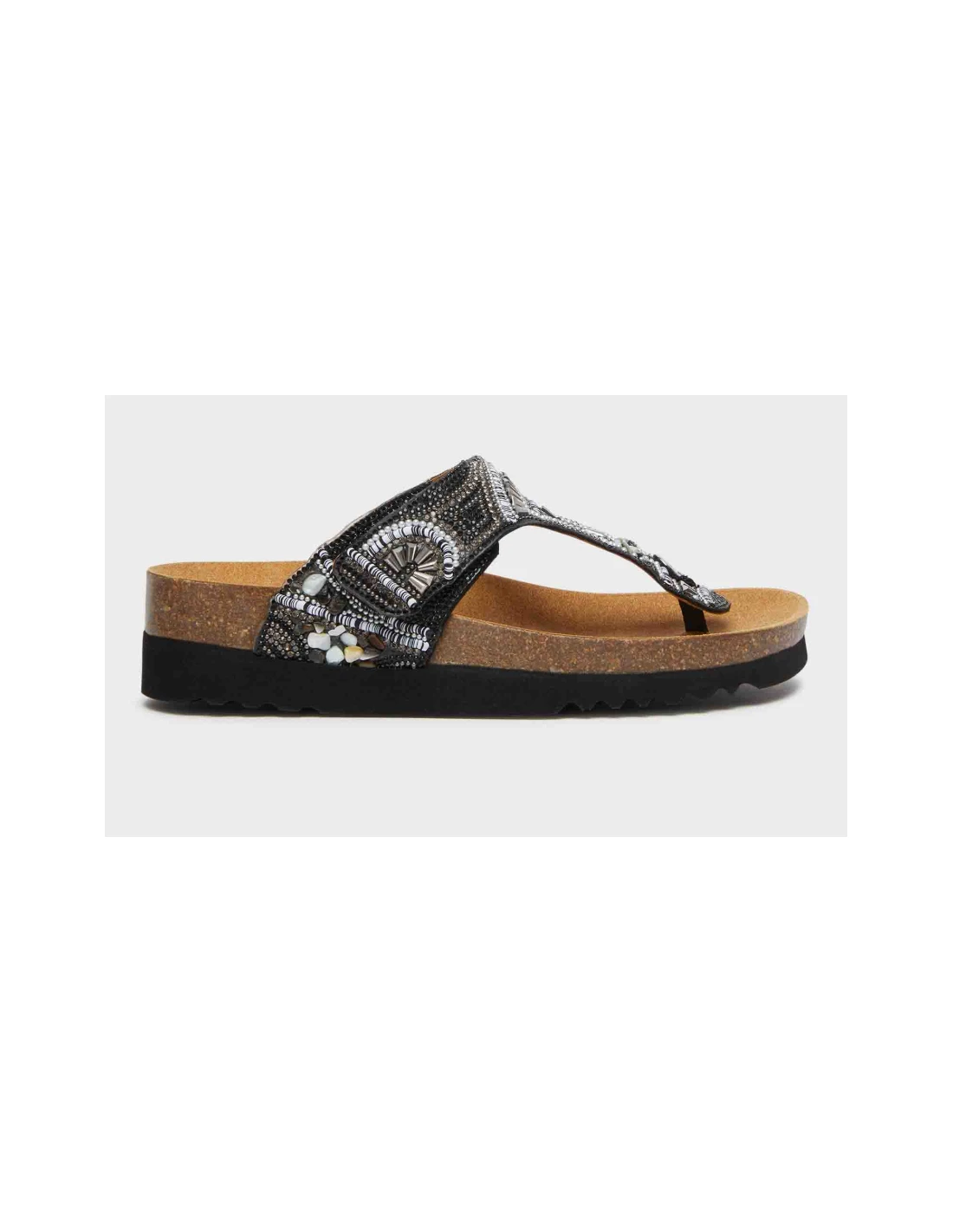 SCHOLL SANDALI LISBOA FLIPFLOP NERI CON PERLINE. Sandalo donna elegante e confortevole, dotato di tecnologia Bioprint® che migliora la postura sostenendo l’arco plantare e favorendo un comfort prolungato. La tomaia è realizzata in microfibra decorata con perline, per un tocco raffinato e di tendenza. Il design con cinturino a T assicura una calzata comoda e pratica. Perfetto per completare i tuoi look estivi con stile e funzionalità.