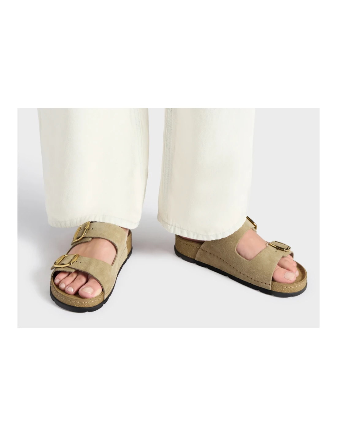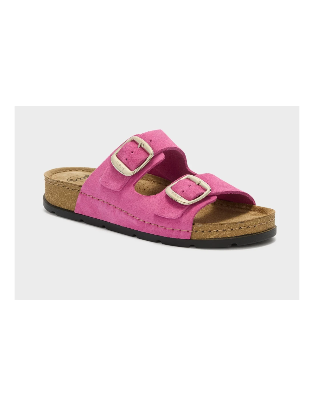 SCHOLL SANDALI BORA 2 FIBBIE - vari colori. Il sandalo Bora 2 Buckles unisce stile e comfort grazie alla tecnologia Memory Cushion®, progettata per ridurre la pressione sul piede e assicurare un comfort prolungato. La tomaia in morbido camoscio garantisce un look elegante e naturale, arricchito da due fibbie metalliche dorate che offrono un tocco raffinato e la possibilità di regolare la calzata. Una scelta ideale per chi cerca un design versatile senza rinunciare al benessere del piede.
