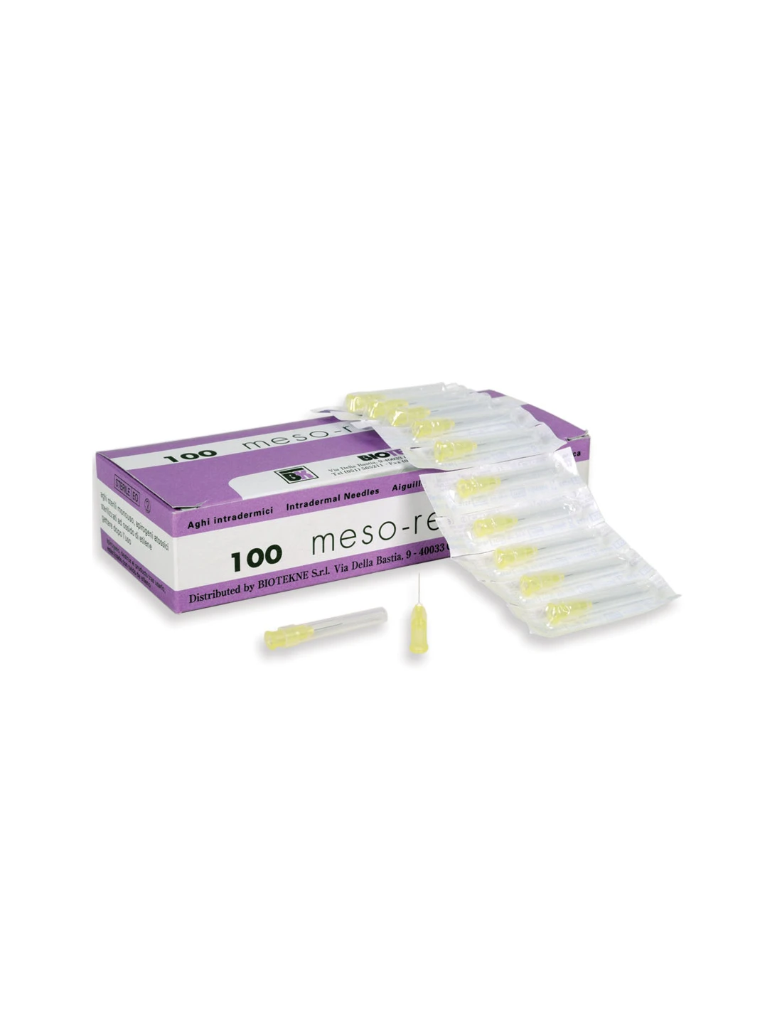 Gli aghi ipodermici monouso Meso-relle sono estremamente affilati per agevolare la penetrazione. Cannula in acciaio inox AISI 304 e connettore per siringa in polipropilene.