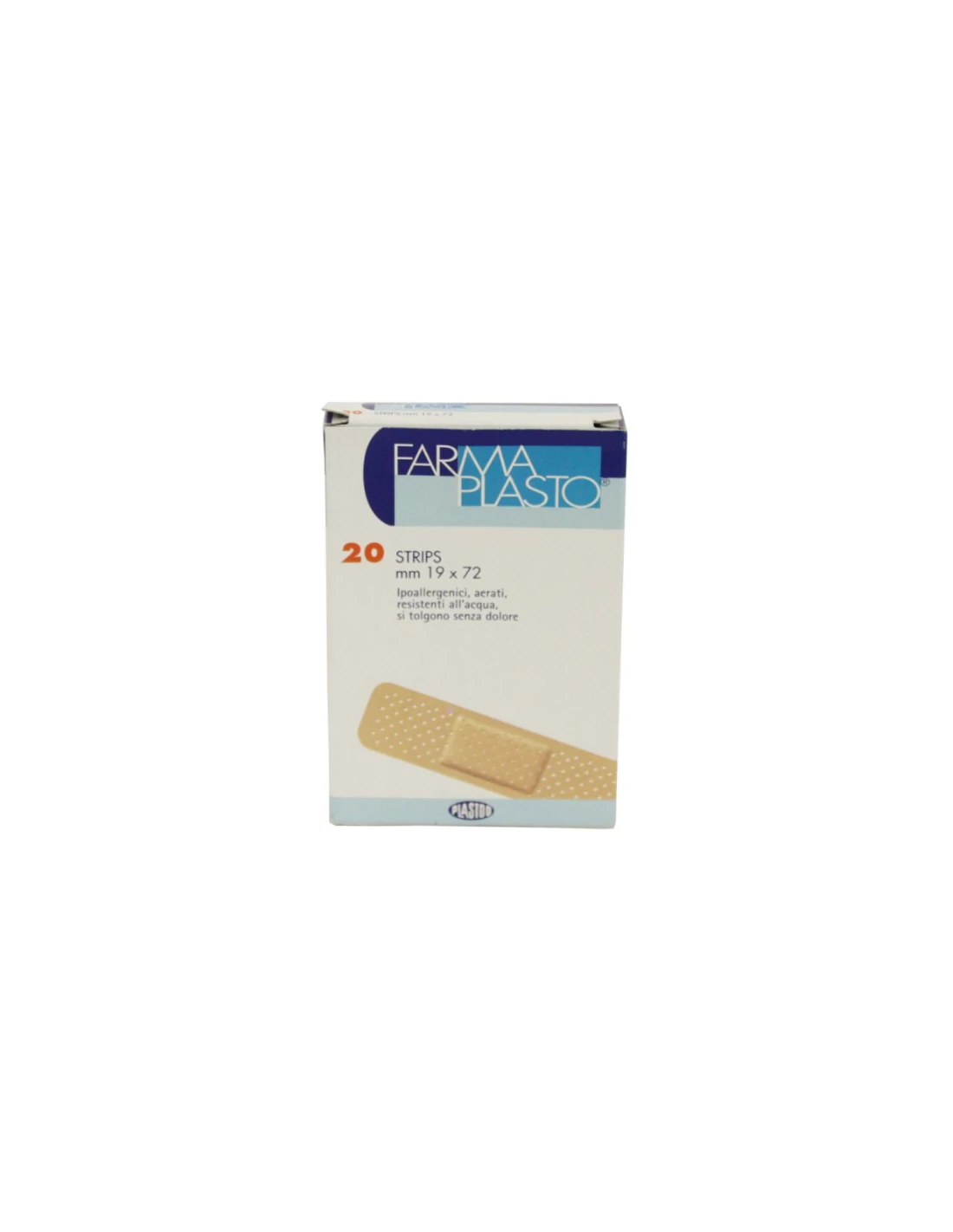 CEROTTI FARMAPLASTO IN PVC 19X72 - CONFEZIONE DA 20PZ. Ipoallergenici, resistenti all'acqua, aerati e si rimuovono senza dolore.