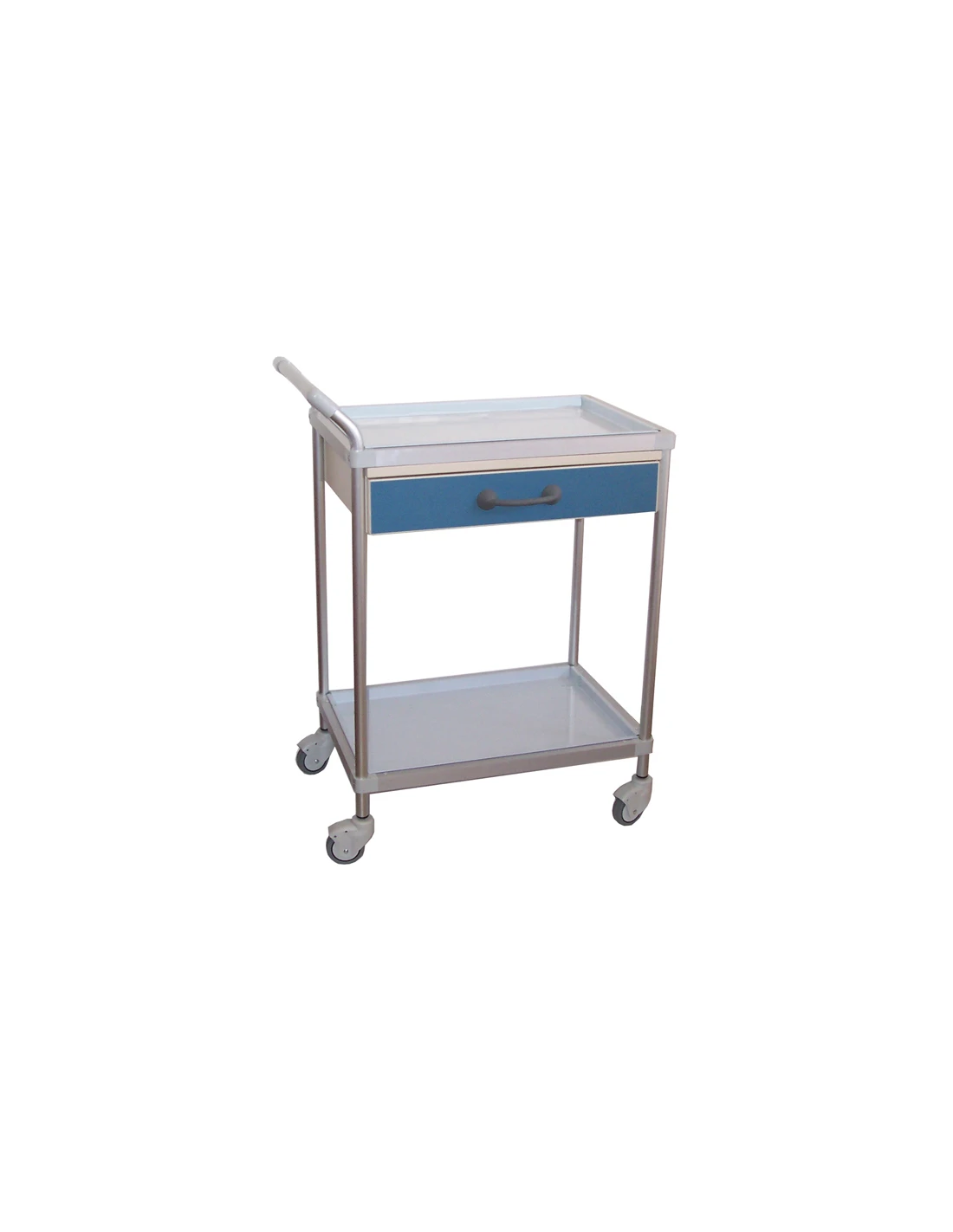 Carrelli di alta qualità in apposita lega leggera anodizzata, con ripiani estraibili in acciaio inox.