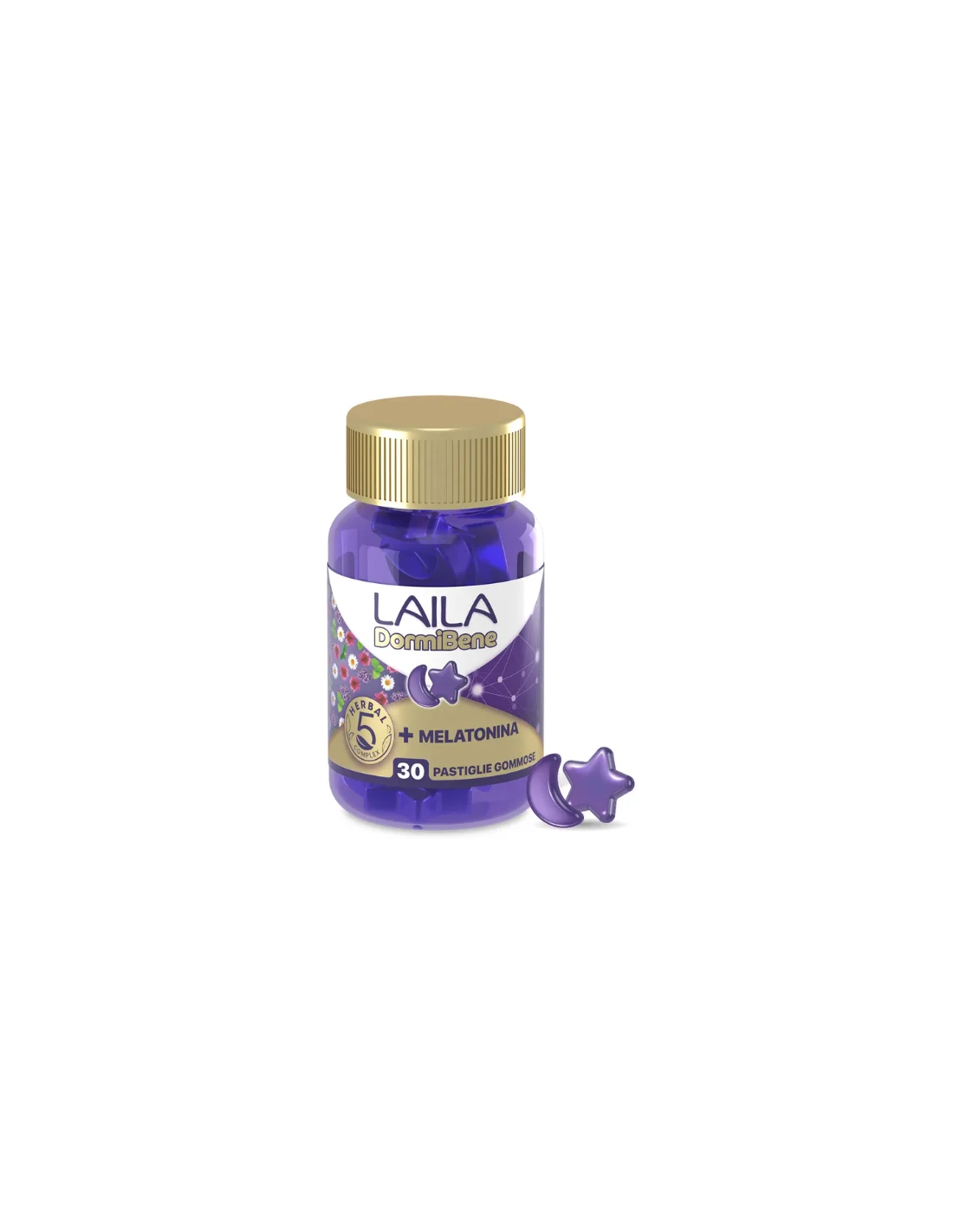 LAILA DORMIBENE 30 PASTIGLIE GOMMOSE ALLA MELATONINA. Laila DormiBene è un integratore alimentare che, grazie alla combinazione di Herbal 5 complex + Melatonina, favorisce un rapido addormentamento, offrendoti un aiuto contro il sonno disturbato. Disturbi del sonno.