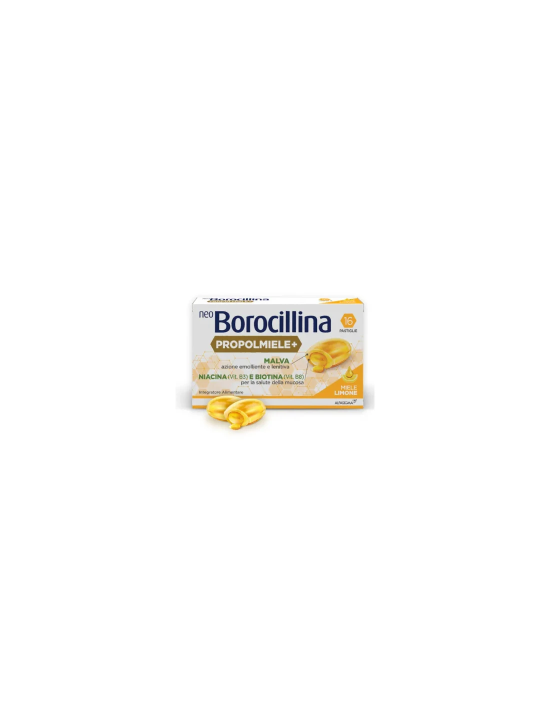 Alfasigma spaNEOBOROCILLINA PROPOLI - MIELE E LIMONE 16 PASTIGLIE TOSSE E GOLA