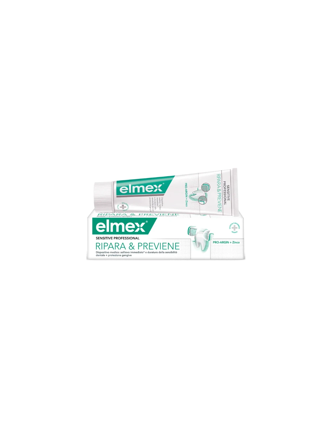 ELMEX SENSITIVE PROFESSIONAL DENTIFRICIO RIPARA E PREVIENE 75ML. Elmex Sensitive è specificamente formulato per le persone con denti sensibili. È ideale per coloro che soffrono di dolore durante il consumo di cibi e bevande calde o fredde. Questo dentifricio è raccomandato anche per l'uso quotidiano per la protezione contro la sensibilità dentale