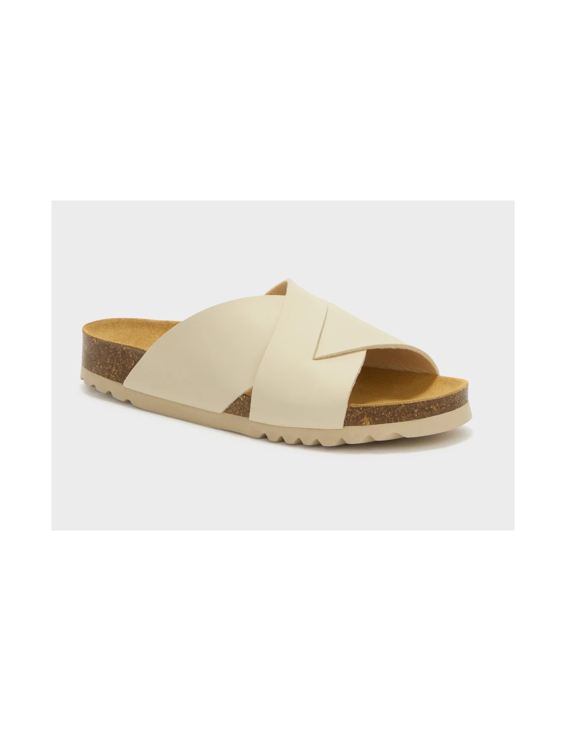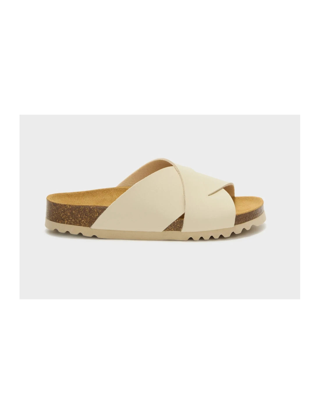 Sandalo in sughero con tomaia dal design incrociato, studiata per avvolgere il piede e valorizzarne la silhouette. Le fasce incrociate offrono... mostra altro