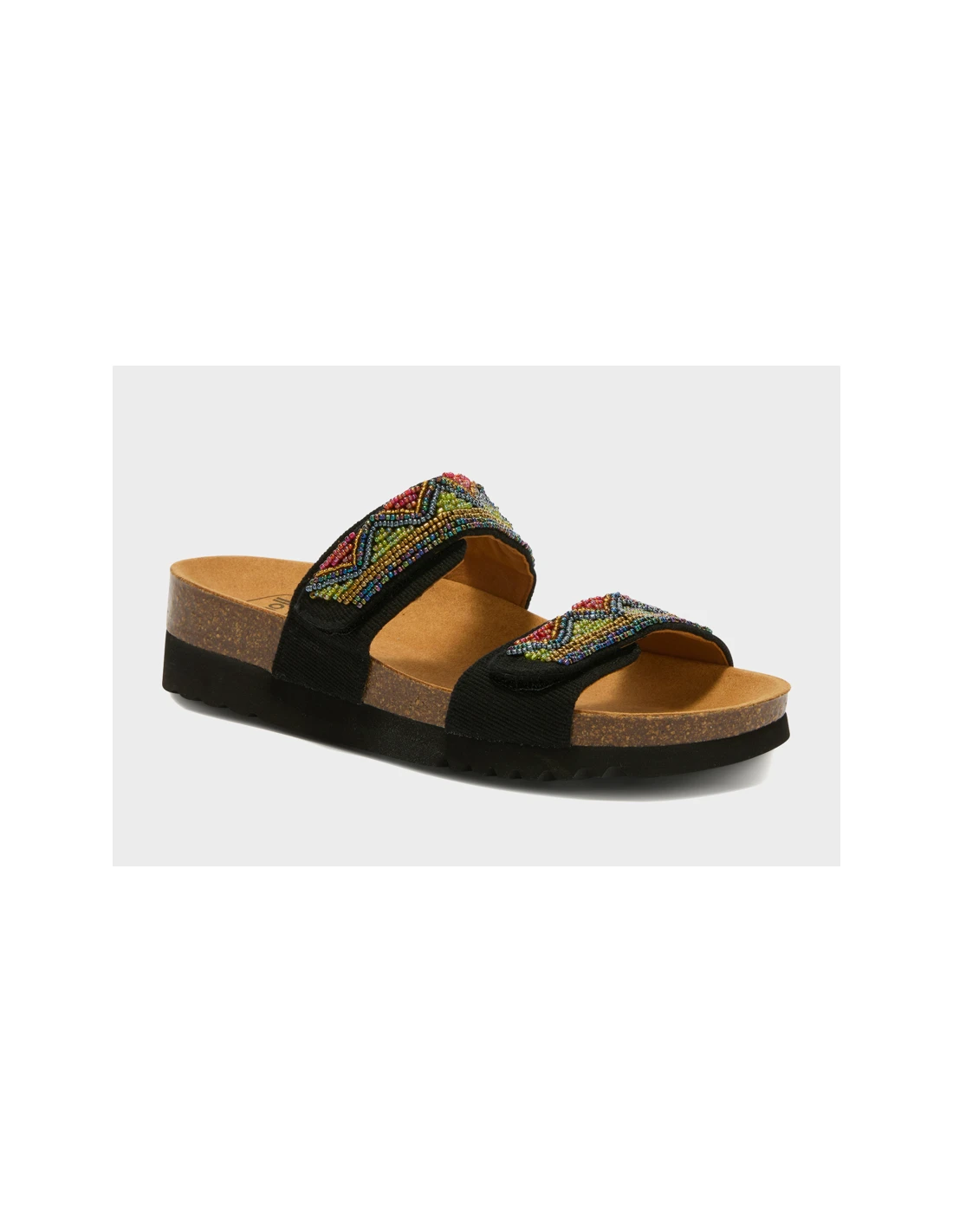 Sandalo a due fasce con strap, impreziosite da perline cucite a mano che donano un tocco artigianale e ricercato. Il design valorizza il piede con stile, unendo femminilità e attenzione ai dettagli. Bioprint® è un sottopiede anatomico progettato per supportare la struttura naturale del piede e favorire una postura corretta durante la camminata.